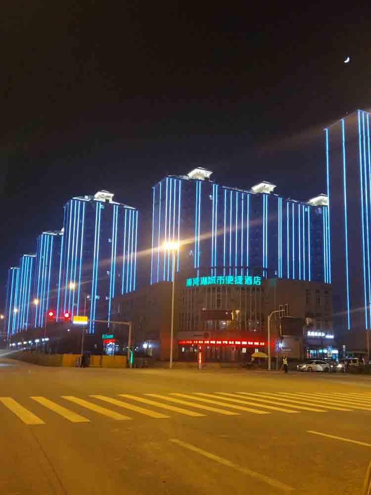 簡介—— 學校坐落于武漢經濟技術開發區后官湖畔,校園占地面積約67萬平方米,校舍建筑面積約33萬平方米。我公司根據項目的特殊性,對亮化的的效果以簡潔大方為主,設計樓體采用的是線條燈輪廓勾勒,頂層打亮的效果,達到學校的滿意的效果反應。