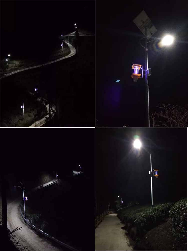 簡介—— 2020年公司生產的照明及殺蟲倆用的路燈產品,項目安裝與陜西西安周至,該燈具采用了倆套供電系統,一套是太陽能路燈系統,一套是太陽能殺蟲燈系統。各自獨立的系統使用更加的穩定。